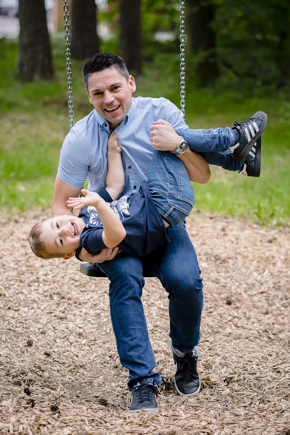 Gerade Kinder lieben es, sich zu bewegen. Beim Schaukeln, Klettern oder Rennen zeigen sie ihre Persönlichkeit auf eine ganz natürliche Weise. Der kleine Junge konnte auf Baumstämmen balancieren, mit leuchtenden Augen die Rutsche hinunterflitzen und zwischendurch immer wieder zur Mama laufen. Diese Momente einzufangen, macht Familienfotografie auf dem Spielplatz so besonders – die Bilder wirken authentisch, lebendig und voller Lebensfreude.