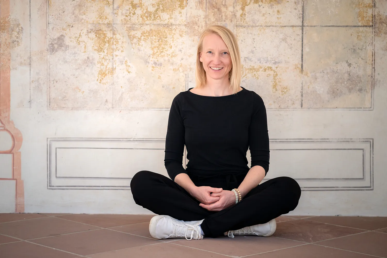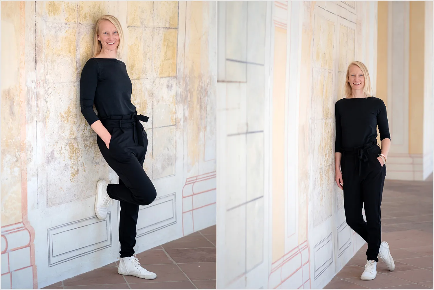 Wilhelmsbad bietet viele unterschiedliche Hintergründe. Historische Gebäude, helle Wege und viel Grün. Diese Vielfalt eignet sich perfekt für Bewerbungsfotos mit Charakter. Während des Shootings haben wir verschiedene Posen ausprobiert. Stehend, sitzend und leicht angelehnt. Mal mit direktem Blick in die Kamera, mal etwas zur Seite gedreht. So entstehen Bilder, die nicht gestellt wirken. Die Kundin konnte sich frei bewegen und entspannen. Das sieht man später auch auf den Fotos.