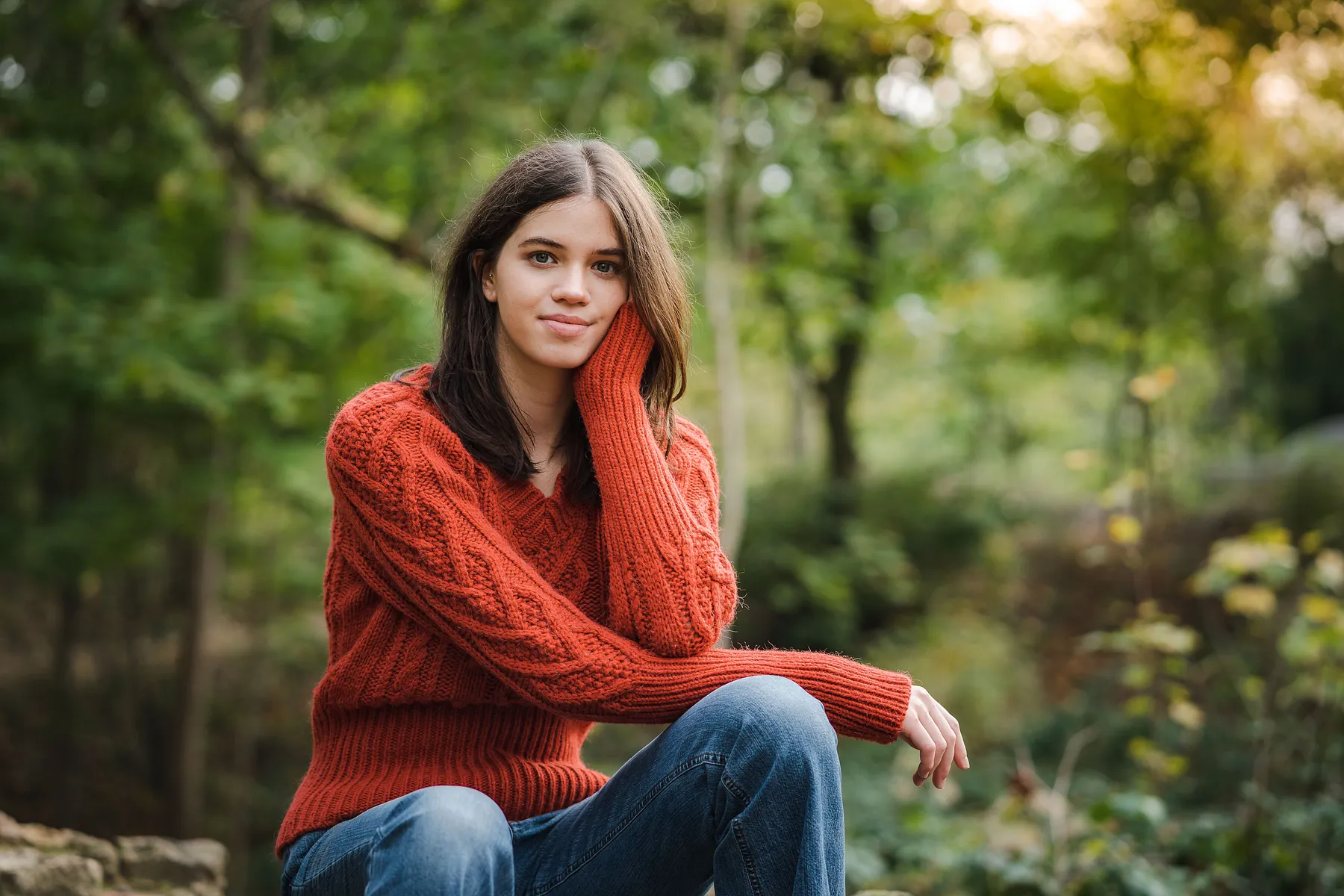 Das Wetter spielte mit – die Sonne war da, aber nicht zu grell, sodass sanftes Licht entstand, das Gesichter schmeichelhaft und lebendig wirken lässt. Gerade bei Portraitaufnahmen bevorzuge ich natürliches Licht, weil es Authentizität und Wärme transportiert. Zwischen Bäumen, auf Wiesen und vor Steinmauern entstanden stimmungsvolle Bilder, die Eva Lunas Ausstrahlung wunderbar zur Geltung bringen.