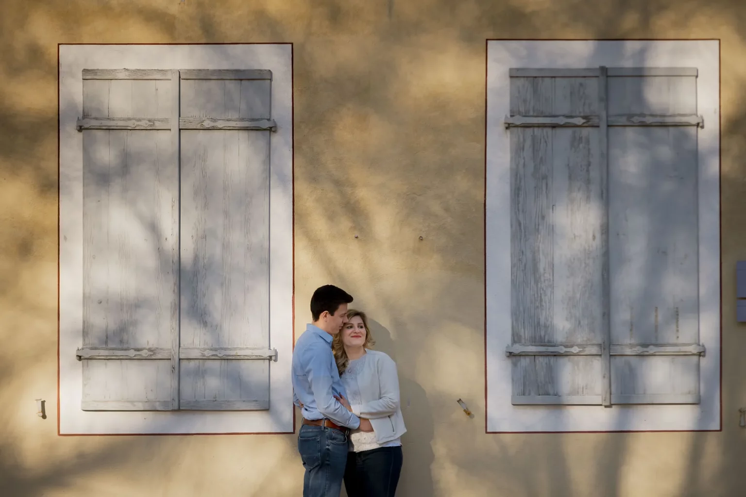 Wir spazierten entspannt durch den Park, redeten, lachten und hielten zwischendurch immer wieder an, um kleine, intime Momente einzufangen. Besonders vor dem großen historischen Haus, dessen Fassade mit ihrem leichten Vintage-Charme eine besondere Atmosphäre bot, entstanden einige meiner Lieblingsbilder. Anne und Daniel bewegten sich ganz natürlich, und die Kulisse verlieh den Fotos eine zeitlose Eleganz, die perfekt zu ihrer Geschichte passt.